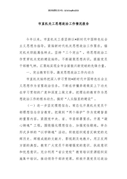 / 【七哥公文】2024年:市直机关工思想政治工作情况报告+更多免费公文+VX:QiGeGongWen2024
