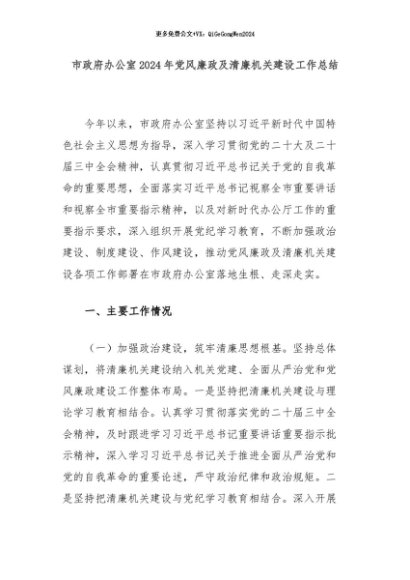 【七哥公文】2024年:市政府办公室2024年党风廉政及清廉机关建设工作总结+更多免费公文+VX:QiGeGongWen2024