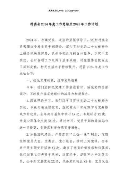 / 【七哥公文】2024年:村委会2024年度工作总结及2025年工作计划+更多免费公文+VX:QiGeGongWen2024