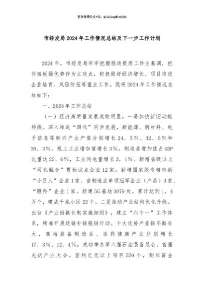 / 【七哥公文】2024年:市经发局2024年工作情况总结及下一步工作计划+更多免费公文+VX:QiGeGongWen2024