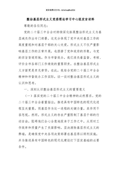 / 【七哥公文】2024年:整治基层形式主义党委理论学习中心组发言材料+更多免费公文+VX:QiGeGongWen2024
