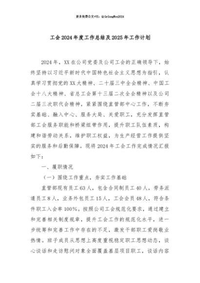 / 【七哥公文】2024年:工会2024年度工作总结及2025年工作计划+更多免费公文+VX:QiGeGongWen2024