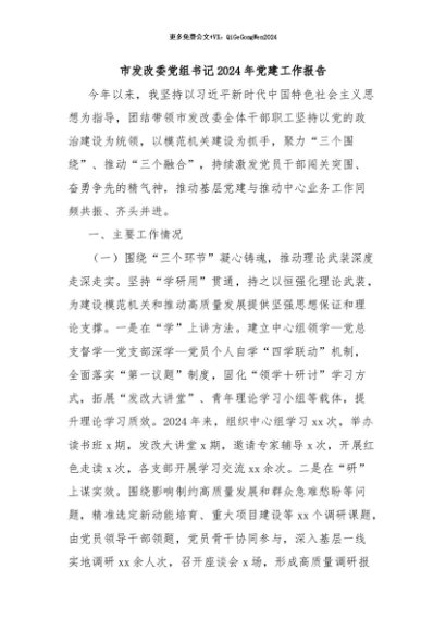 / 【七哥公文】2024年:市发改委党组书记2024年党建工作报告+更多免费公文+VX:QiGeGongWen2024