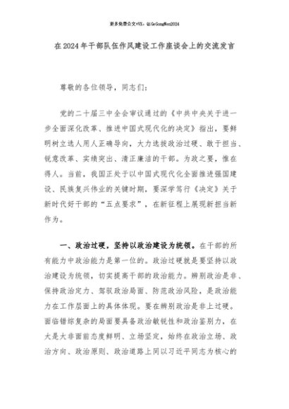 【七哥公文】2024年:在2024年干部队伍作风建设工作座谈会上的交流发言+更多免费公文+VX:QiGeGongWen2024