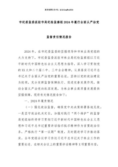 【七哥公文】2024年:市纪委监委派驻市局纪检监察组2024年履行全面从严治党监督责任情况报告+更多免费公文+VX:QiGeGongWen2024