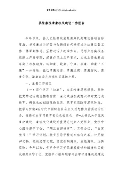 / 【七哥公文】2024年:县检察院清廉机关建设工作报告+更多免费公文+VX:QiGeGongWen2024