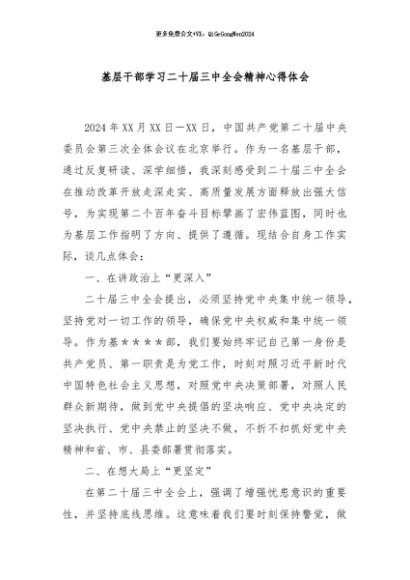 / 【七哥公文】2024年:基层干部学习二十届三中全会精神心得体会+更多免费公文+VX:QiGeGongWen2024
