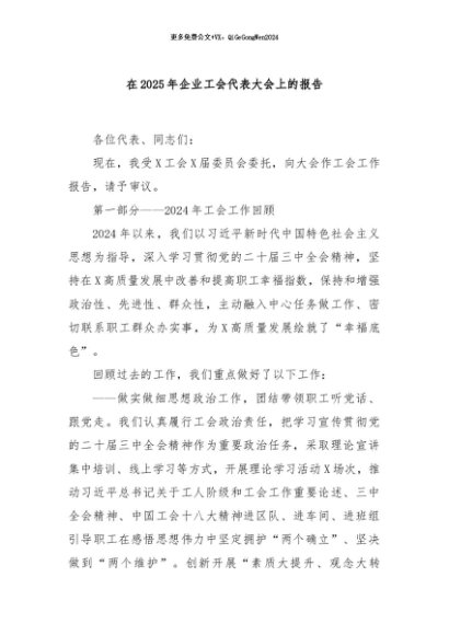 / 【七哥公文】2024年:在2025年企业工会代表大会上的报告+更多免费公文+VX:QiGeGongWen2024