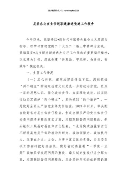 / 【七哥公文】2024年:县委办公室主任述职述廉述党建工作报告+更多免费公文+VX:QiGeGongWen2024