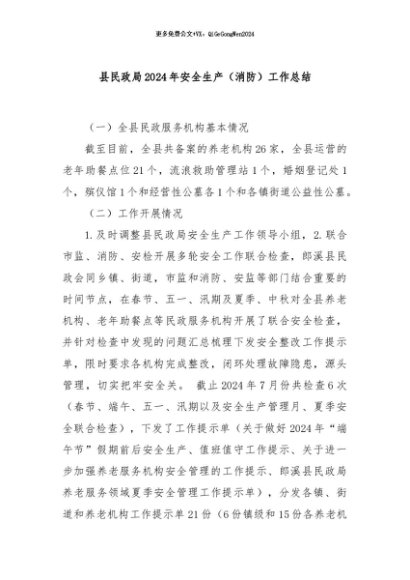 / 【七哥公文】2024年:县民政局2024年安全生产(消防)工作总结+更多免费公文+VX:QiGeGongWen2024
