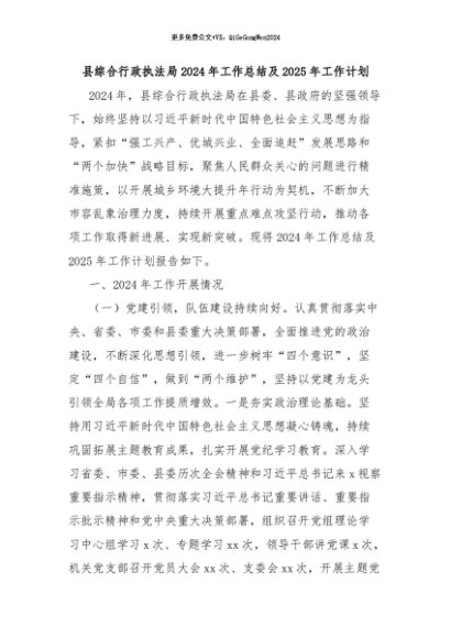 【七哥公文】2024年:县综合行政执法局2024年工作总结及2025年工作计划+更多免费公文+VX:QiGeGongWen2024