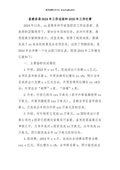 / 【七哥公文】2024年:县商务局2024年工作总结和2025年工作打算+更多免费公文+VX:QiGeGongWen2024