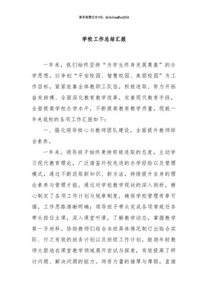 / 【七哥公文】2024年:学校工作总结汇报+更多免费公文+VX:QiGeGongWen2024