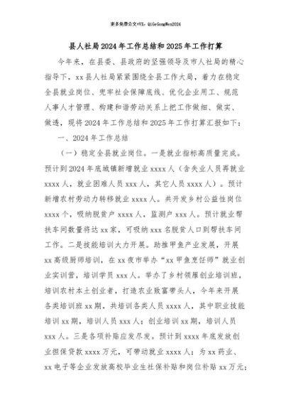 / 【七哥公文】2024年:县人社局2024年工作总结和2025年工作打算+更多免费公文+VX:QiGeGongWen2024