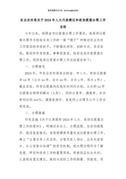 【七哥公文】2024年:农业农村局关于2024年人大代表建议和政协提案办理工作总结+更多免费公文+VX:QiGeGongWen2024
