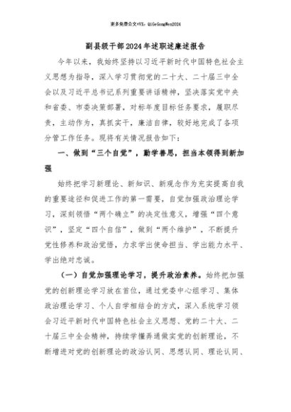 / 【七哥公文】2024年:副县级干部2024年述职述廉述报告+更多免费公文+VX:QiGeGongWen2024