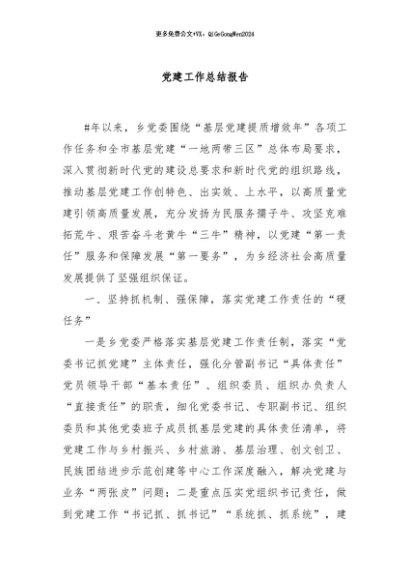 / 【七哥公文】2024年:党建工作总结报告+更多免费公文+VX:QiGeGongWen2024