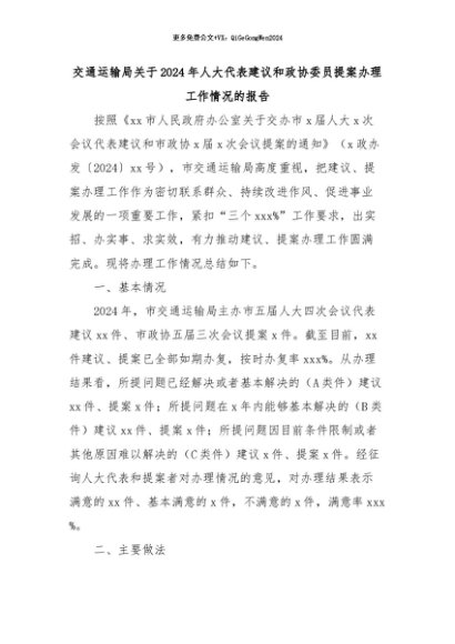 【七哥公文】2024年:交通运输局关于2024年人大代表建议和政协委员提案办理工作情况的报告+更多免费公文+VX:QiGeGongWen2024