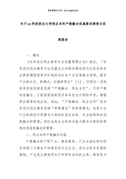 【七哥公文】2024年:关于xx科技职业大学职业本科产教融合实施路径探索与实践报告+更多免费公文+VX:QiGeGongWen2024
