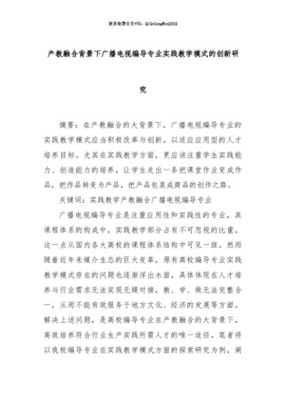 【七哥公文】2024年:产教融合背景下广播电视编导专业实践教学模式的创新研究+更多免费公文+VX:QiGeGongWen2024
