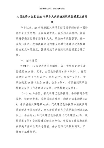 【七哥公文】2024年:人民政府办公室2024年承办人大代表建议政协提案工作总结+更多免费公文+VX:QiGeGongWen2024