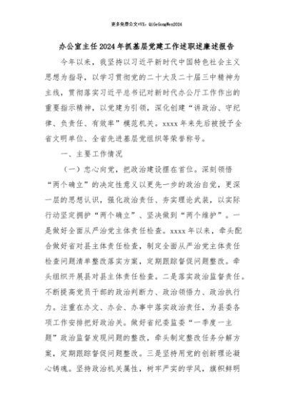 / 【七哥公文】2024年:办公室主任2024年抓基层党建工作述职述廉述报告+更多免费公文+VX:QiGeGongWen2024