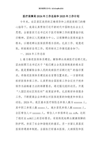 / 【七哥公文】2024年:医疗保障局2024年工作总结和2025年工作计划+更多免费公文+VX:QiGeGongWen2024