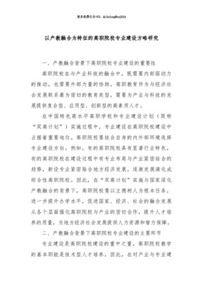 / 【七哥公文】2024年:以产教融合为特征的高职院校专业建设方略研究+更多免费公文+VX:QiGeGongWen2024