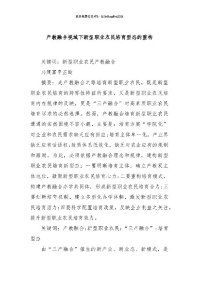 / 【七哥公文】2024年:产教融合视域下新型职业农民培育型态的重构+更多免费公文+VX:QiGeGongWen2024