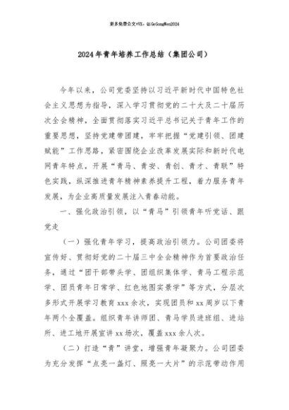/ 【七哥公文】2024年:2024年青年培养工作总结(集团公司)+更多免费公文+VX:QiGeGongWen2024