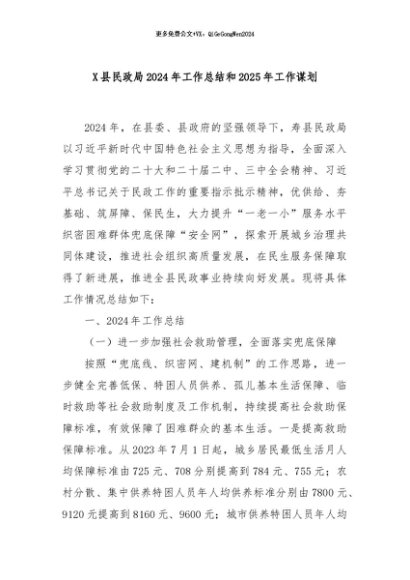 / 【七哥公文】2024年:X县民政局2024年工作总结和2025年工作谋划+更多免费公文+VX:QiGeGongWen2024