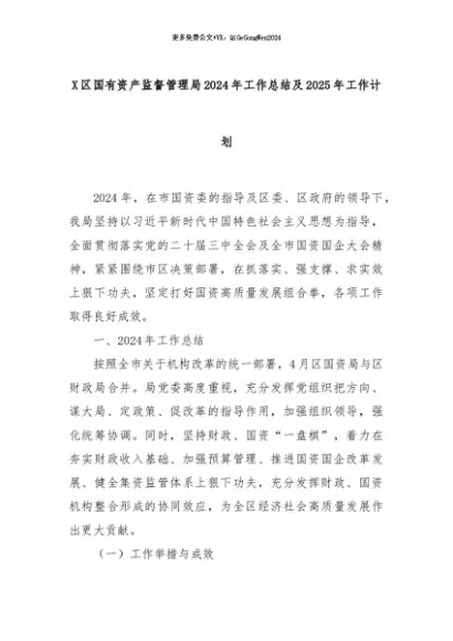 【七哥公文】2024年:X区国有资产监督管理局2024年工作总结及2025年工作计划+更多免费公文+VX:QiGeGongWen2024