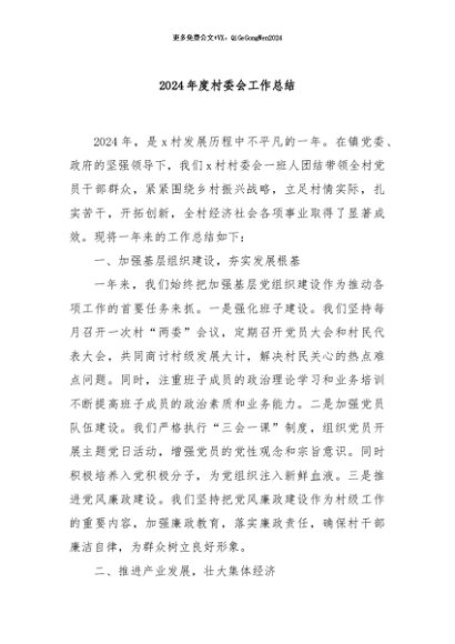 / 【七哥公文】2024年:2024年度村委会工作总结+更多免费公文+VX:QiGeGongWen2024