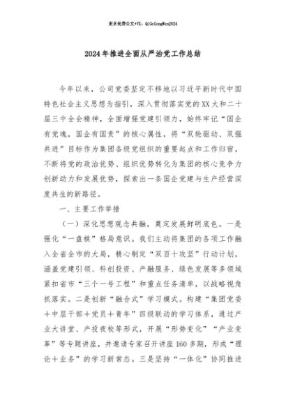 / 【七哥公文】2024年:2024年推进全面从严治党工作总结+更多免费公文+VX:QiGeGongWen2024