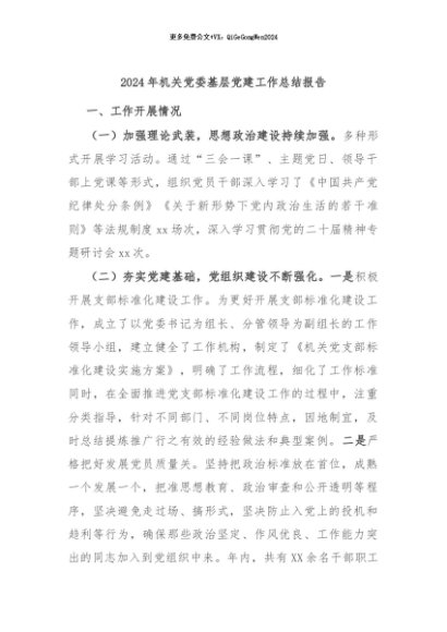 / 【七哥公文】2024年:2024年机关党委基层党建工作总结报告+更多免费公文+VX:QiGeGongWen2024