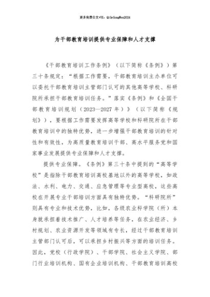 / 【七哥公文】2024年:为干部教育培训提供专业保障和人才支撑+更多免费公文+VX:QiGeGongWen2024