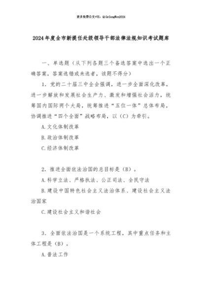 【七哥公文】2024年:2024年度全市新提任处级领导干部法律法规知识考试题库+更多免费公文+VX:QiGeGongWen2024