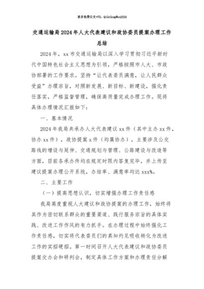 【七哥公文】2024年:交通运输局2024年人大代表建议和政协委员提案办理工作总结+更多免费公文+VX:QiGeGongWen2024