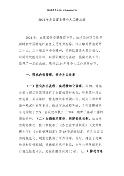 【七哥公文】2024年:2024年办公室主任个人工作总结+更多免费公文+VX:QiGeGongWen2024+更多免费公文+VX:QiGeGongWen2024