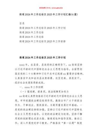【七哥公文】2024年:(4篇)街道2024年工作总结及2025年工作计划汇编+更多免费公文+VX:QiGeGongWen2024