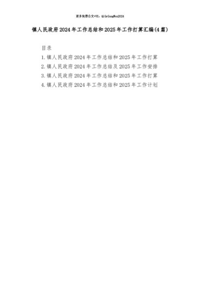 【七哥公文】2024年:(4篇)镇人民政府2024年工作总结和2025年工作打算汇编+更多免费公文+VX:QiGeGongWen2024