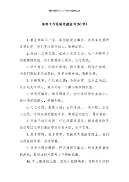 / 【七哥公文】2024年:(50例)年终工作总结过渡金句+更多免费公文+VX:QiGeGongWen2024