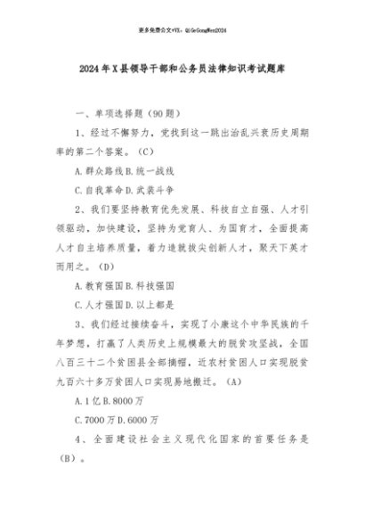 【七哥公文】2024年:2024年X县领导干部和公务员法律知识考试题库+更多免费公文+VX:QiGeGongWen2024