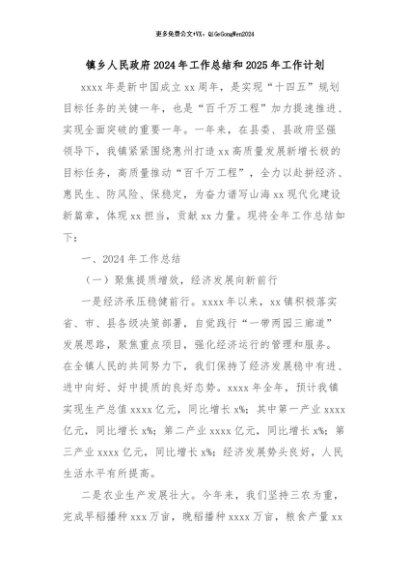 【七哥公文】2024年:镇乡人民政府2024年工作总结和2025年工作计划+更多免费公文+VX:QiGeGongWen2024+更多免费公文+VX:QiGeGongWen2024