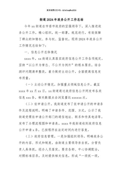 【七哥公文】2024年:街道2024年政务公开工作总结+更多免费公文+VX:QiGeGongWen2024+更多免费公文+VX:QiGeGongWen2024
