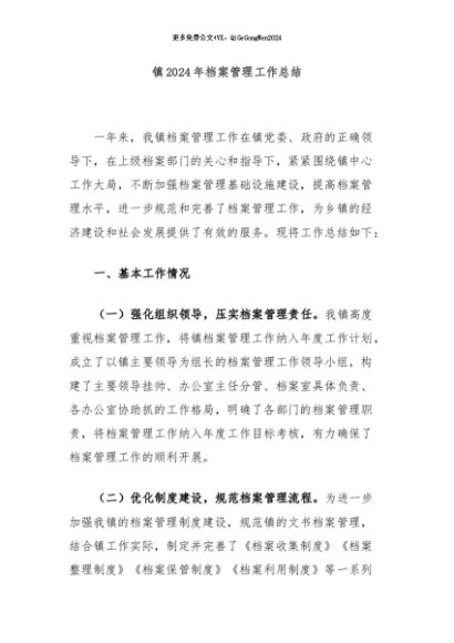 【七哥公文】2024年:镇2024年档案管理工作总结+更多免费公文+VX:QiGeGongWen2024+更多免费公文+VX:QiGeGongWen2024