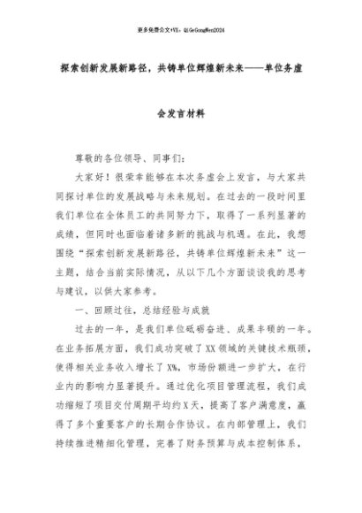 【七哥公文】2024年:探索创新发展新路径,共铸单位辉煌新未来——单位务虚会发言材料+更多免费公文+VX:QiGeGongWen2024+更多免费公文+VX:QiGeGongWen2024