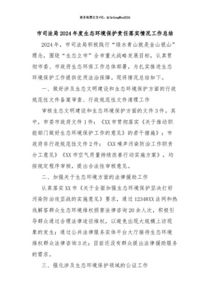【七哥公文】2024年:市司法局2024年度生态环境保护责任落实情况工作总结+更多免费公文+VX:QiGeGongWen2024+更多免费公文+VX:QiGeGongWen2024