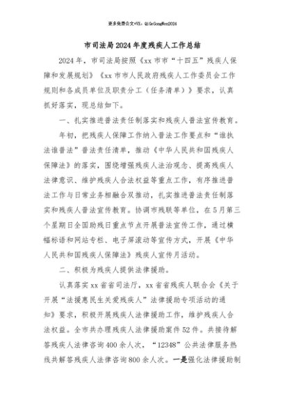【七哥公文】2024年:市司法局2024年度残疾人工作总结+更多免费公文+VX:QiGeGongWen2024+更多免费公文+VX:QiGeGongWen2024