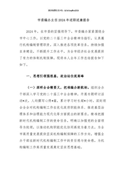 【七哥公文】2024年:市委编办主任2024年述职述廉报告+更多免费公文+VX:QiGeGongWen2024+更多免费公文+VX:QiGeGongWen2024